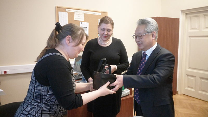 代表团带着增进校级交流、开拓合作模式、留学生招生宣传等目的,参加了普列汉诺夫经济大学举办的“高等教育未来和大学发展”的高端论坛,会见了中国驻俄罗斯大使馆教育处公使衔参赞赵国成先生,出席了中国联想集团捐助普列汉诺夫经济大学计算机等教学设备活动,与普列汉诺夫经济大学校长Victor I.GRISHIN以及来自瑞典、阿塞拜疆、克罗地亚、蒙古国高校校长们进行了友好会谈。在与该校管理学院正式会谈中,就“管理学”专业开展学生交换进行了教学大纲对接沟通,双方同意就经济学、市场营销、商学、旅游管理、应用信息技术等专业开展一学期至两学期每年十名交换生的合作,并定于2017年9月开始实施。为落实国家“一带一路”战略,代表团与对方初步达成了就“创新与投资管理”开办中外合作办学本科专业意向,该专业作为管理学和应用经济学交叉学科,授予管理学学位。借出访之际与原莫斯科国立经济统计信息大学就会计统计学专业合作进行了初步交流。
