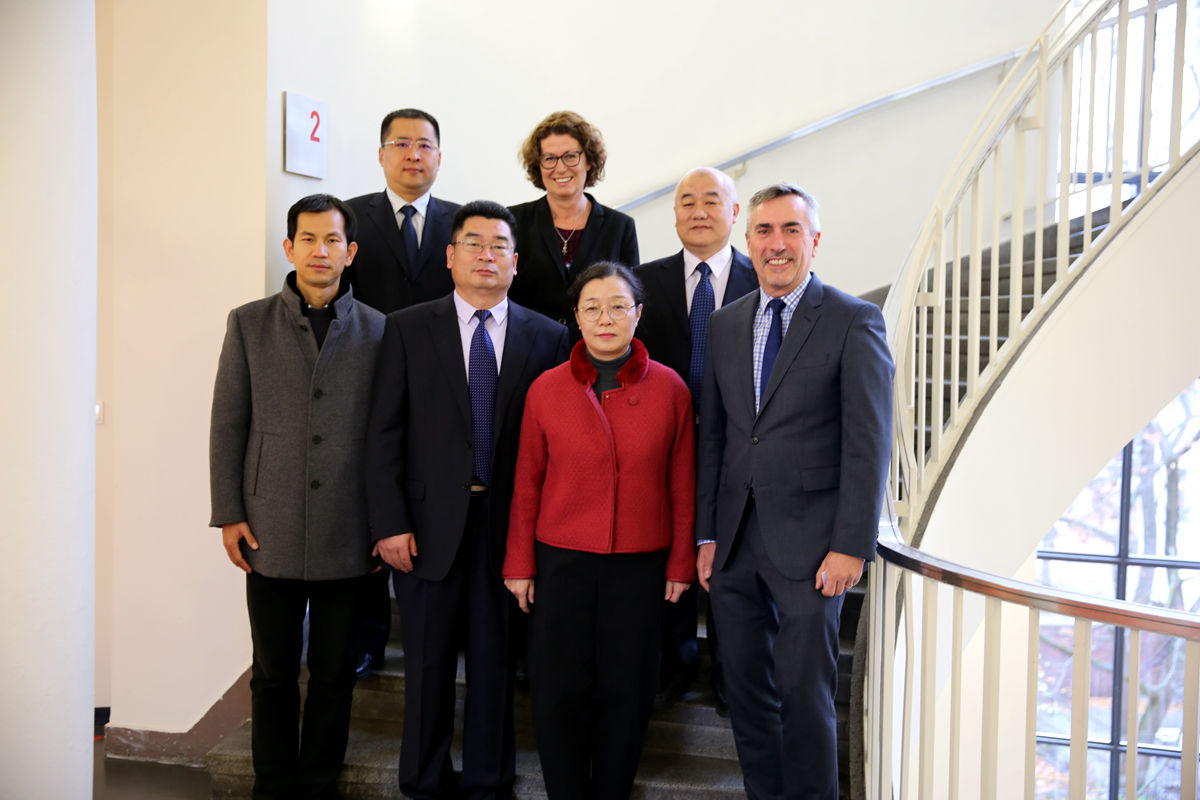 在德国埃森经济管理应用科技大学,行政校长Harald Beschorner、中德经济科技学院院长柳林、Axel Muller教授及相关项目负责人热情接待了代表团并进行会谈。双方就选派教师到对方学校授课、本科学生短期互访、本升硕等项目达成诸多意向,并签订了两校合作备忘录。