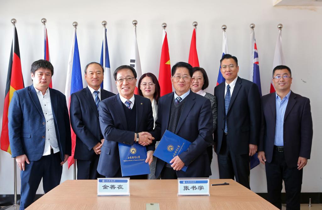 张书学代表学校欢迎金善在一行来访,向客人介绍了学校的办学历史、近期发展和国际化办学的基本情况。他指出,学校重视国际交流合作,希望两校能充分利用地缘优势,积极开展友好交流和务实合作。