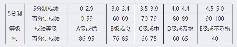 (2)对方学校按5分制或“A、B、C、D、E”“优、良、中、及格、不及格”等级制形式登录课程成绩的,则在确定对方学校与我校成绩等级、百分制成绩的对应关系后,根据具体情况转换成我校相应的成绩等级。具体成绩由学院根据研究生所在班级平均成绩进行确定,根据下表中的对应关系,转换成相应的百分制成绩。