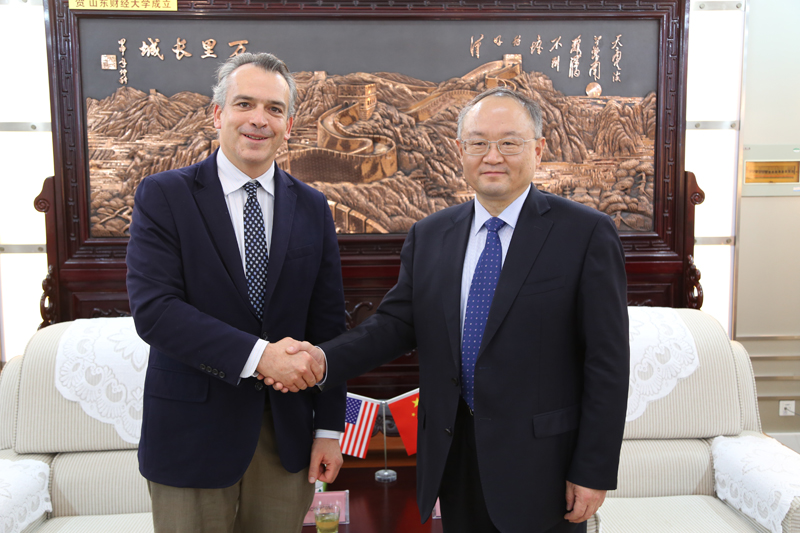 11月18日下午,党委书记刘兴云在舜耕校区会见了美国纽约福特汉姆大学商学院副院长弗朗西斯佩蒂(Francis Petit)教授、副院长颜安教授、商学院驻中国区主任高春阳、山东建邦控股集团总经理陈箭等一行四人。教务处、经济学院、国际经贸学院、金融学院、研究生院、MBA学院、国际交流与合作处等部门负责人参加了会见。