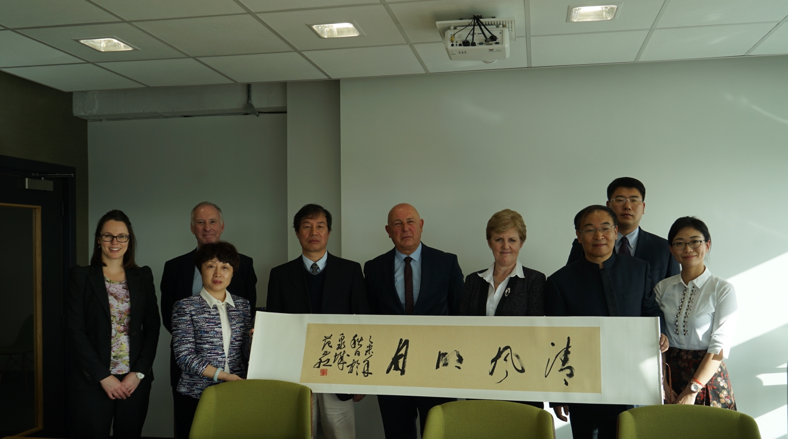 在爱丁堡龙比亚大学,校长诺兰会见了代表团,诺兰首先欢迎代表团的到访,回顾了双方长期以来的合作,表示龙比亚大学高度重视和珍惜与我校的国际合作与交流,两校有着非常好的合作基础,龙比亚大学愿意在现有的合作基础上,继续扩大与我校的交流与合作规模和层次。同时,非常高兴看到经过双方的努力,新的本科专业财富管理项目已经进入实质性开展阶段,艺术学院间的交流合作意向业已达成,希望通过双方工作人员的共同努力,能够将合作尽快进入实施阶段。聂培尧感谢诺兰的盛情邀请和款待,同意诺兰校长提出的进一步扩大双方合作规模,提高合作层次,以及寻求新的合作机制的想法。同时祝愿两校新的本科专业“财富管理合作项目”以及艺术学院间的合作能够顺利实施,不断深化。在龙比亚大学访问期间,代表团分别与副校长斯通豪斯博士、国际合作交流处处长、金融学院院长、艺术与创意产业学院负责人进行了会谈。代表团还看望了我校在龙比亚大学的部分硕士、本科学生代表,聂校长代表学校向大家表示慰问,希望大家能够不畏困难,努力拼搏,为自己在最美好的时期留下最美好的回忆。学生代表也踊跃发言,大家一致感谢学校提供的赴龙比亚大学学习的机会,并且表示尽管学习任务比较重,困难比较多,但是一定会努力学习,克服困难,以优异的成绩完成学业。
