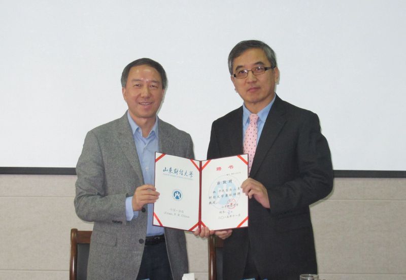 11月16日上午,林平特聘教授聘任仪式暨金融学院国际化合作办学签约仪式在舜耕校区举行。校长卓志、副校长聂培尧出席仪式并讲话。香港岭南大学林平教授、台湾开南大学黄仁德教授、台湾中兴大学董澍琦教授、澳大利亚Deakin大学中国办主任张弛受邀参加仪式。学校人才工作办公室、教务处、国际交流与合作处、金融学院主要负责人,师生代表参加了此次活动。