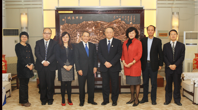 10月20日美国桑福德大学校长安德鲁•威斯特摩兰博士(Andrew Westmoreland)与桑福德大学中国办公室同仁一起访问我校。刘兴云会见了来宾,教务处、研究生部、公共管理学院、国际交流与合作处负责人参加会见,并商讨两校合作事宜。