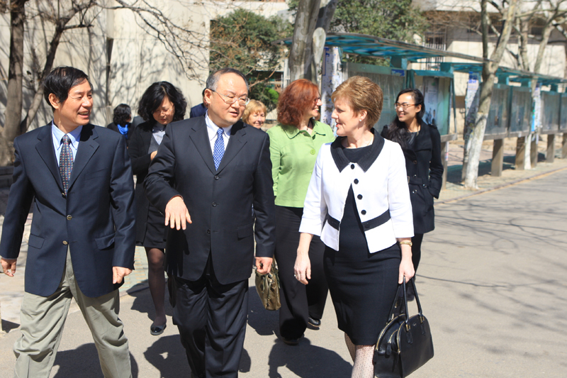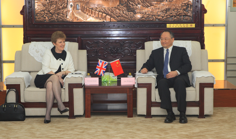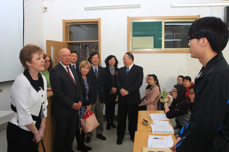会谈后,刘兴云、聂培尧陪同诺兰校长参观了我校舜耕校区校园以及国际交流学院龙比亚项目办公室,看望了中英合作项目学生。斯图尔特.福尔克纳院长对我校申请前往该校攻读学位的学生进行了面试,对学生流畅的英语、良好的素质表示满意和赞赏,决定给予其中四名同学全额奖学金、另四名同学享受25%学费减免。