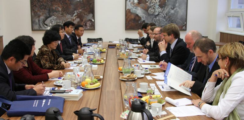 布拉格都市大学是捷克以国际关系研究为重点的私立大学。该校公共管理与人文学院的亚洲问题研究中心,开设汉语教学课程。该校校长Michal Klima教授、国际关系及欧洲问题系主任Mictchell A. Belfer博士、亚洲问题研究和国际关系专家Tomas Petru博士、国际部主任Josef Vochozka及曾在我校任教的国际贸易研究学者Vilem Semeral博士热情地接待了我校代表团一行。校长Michal Klima教授介绍了学校的现状和对中国的研究情况,希望与我校建立友好关系并开展实质性合作,表达了双方共同建立孔子学院的愿望。