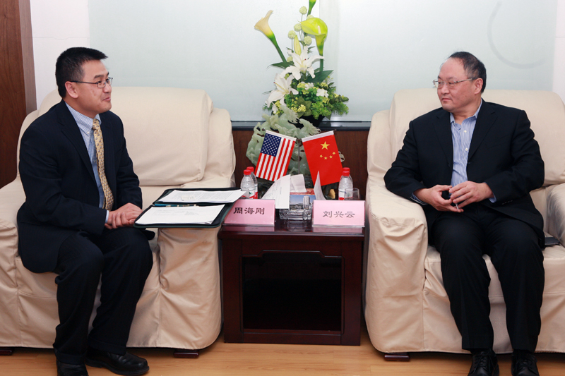 12月19日,美国克利夫兰州立大学商学院周海刚博士访问我校。校长刘兴云会见了来宾,教务处、经济学院、国际经贸学院、国际交流合作处负责人参见会见并与来宾座谈。