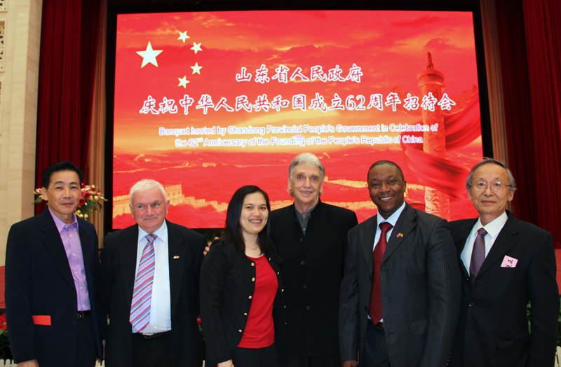 9月27日晚,山东省政府在南郊宾馆举行庆祝建国62周年招待会。我校燕山校区的Findlay Nicol、Theophilus Fusi、Michelle Dumo和舜耕校区的Keith Klockow、Bobbis Noli、中野铁正六位外籍专家受邀参加。