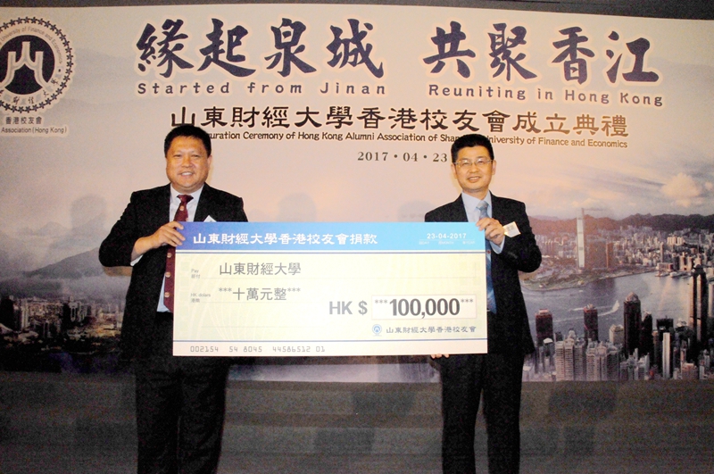 典礼上,新成立的香港校友会向母校捐款10万港元。中银香港、香港文化产业集团、鲁港企业投融资联合会、香港大学、中国高等院校香港校友会联合会、山东大学香港校友会、中央财经大学香港校友会等有关机构的代表到场祝贺,山东财经大学内地校友会及部分校友发来贺电贺信。