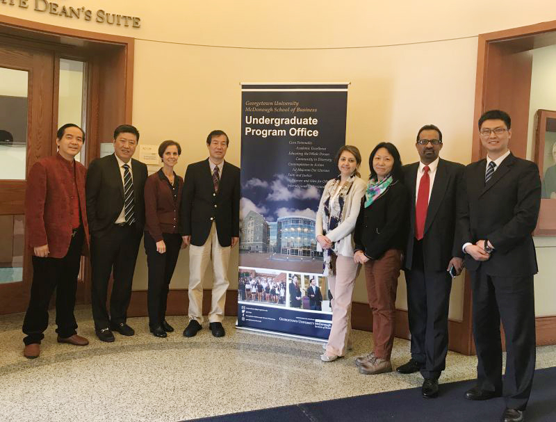 5月12日,代表团访问了美国乔治城大学,与该校麦克多诺商学院副院长莫妮佳•阿玛尼(Monija Amani)、院长助理丹妮拉•布兰卡佛特(Daniela Brancaforte)博士等相关负责人进行了会谈。双方一致同意以暑期课程项目为起点,开展合作交流,并将在此基础上逐步扩展合作领域。