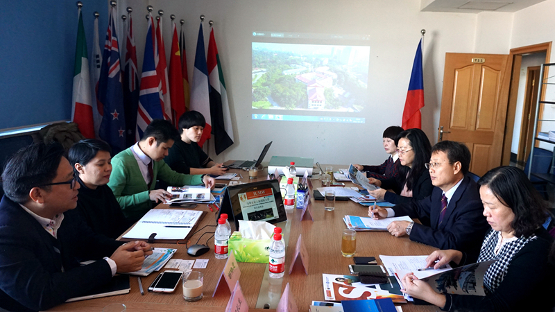 韩作生代表学校欢迎马来亚威尔士国际大学代表团一行访问我校,他向客人介绍了我校的办学历史、专业特色以及国际交流情况,希望在“一带一路”背景下,通过两校合作,促进两国师生之间的了解沟通,提升学校办学水平和国际声誉,开展实质性合作。罗麦查感谢我校的热情接待,介绍了马来亚威尔士国际大学基本情况,并阐述了与我校在经济、金融和管理类专业进行合作的意愿,以促进学生及教师的发展。经深入细致地商谈,双方商定利用马来亚大学和英国威尔士大学资源和认证优势,在研究生共同培养、互派短期交流生、互派教师讲学以及签署合作备忘录等事宜达成初步意向。