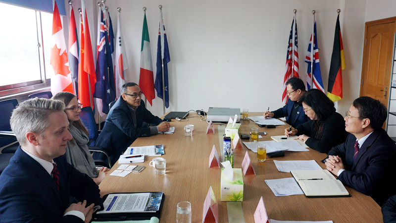 韩作生向客人介绍了学校概况和国际交流情况,充分肯定了双方十年合作取得的成绩。双方回顾了项目合作的历程,就项目相关问题进行了讨论并就引进外方课程和聘请教师来校授课等进行了探讨。