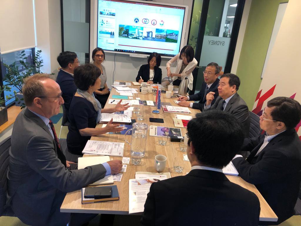 在澳大利亚麦考瑞大学访问期间, 执行副校长David Harrison、商学院副院长菲拉米娜•梁(Philomena Leung)教授、国际部斯黛拉•王(Stella Wang)主任以及商学院金融系主任汤姆•史密斯(Tom Smith)教授等出席并参加了不同阶段的会谈。王邵军高度评价了麦考瑞大学作为研究型大学所享有的学术声誉,介绍了我校近年来的快速发展态势和国际化办学发展状况,希望在两校建立友好关系的基础上,加大本科生、研究生等不同层次的人才培养合作,探索了在国家留学基金委政策框架下联合培养博士研究生的可能性和可行性。彭红枫与商学院金融系探讨了本硕的3+1+1、硕士的1+1+1项目,初步达成合作意向,探讨了联合培养博士项目的可能性。陈保启介绍了MBA学院国际化战略的重点和思路,探讨了MBA师资和学员互相交流、游学的方式,并达成初步意向。代表团专门考察了麦考瑞大学MBA中心,了解了麦考瑞大学MBA的课程设置、培养模式、教室设计和国际化办学的主要做法。王爱国就澳大利亚的会计制度以及人才培养的模式和合作前景与商学院的相关负责人进行了深入探讨和交流。王邵军与大卫•哈里森(David Harrison)共同签署了两校合作备忘录,彭红枫代表金融学院签署了金融硕士双学位项目协议书。