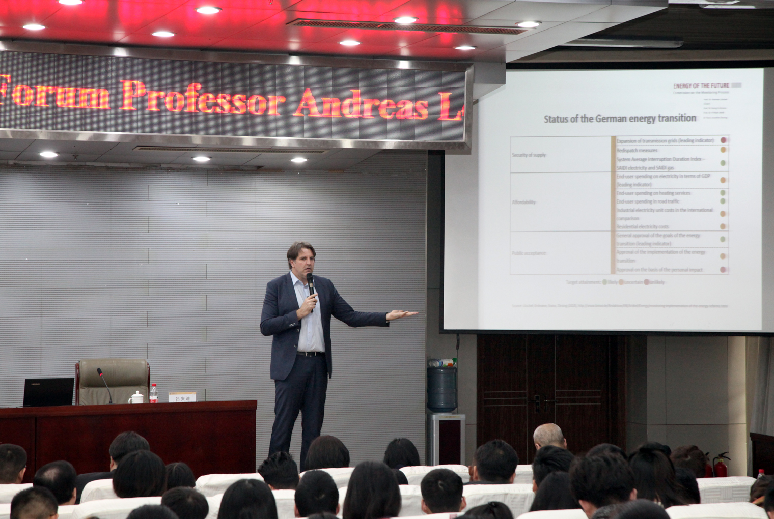 下午,“泰山论道”大师讲坛在舜耕校区天舜大厦文华堂举行。吕安迪院士作首场学术报告,谈德国能源转换之道,我校近300名师生聆听了报告。赵忠秀在致辞中简要介绍了我校举办“泰山论道”大师讲坛的目的和宗旨。他指出,吕安迪院士带来的德国“能源概念”,将为促进山东社会经济发展、推动新旧动能转换、促进产教融合,带来宝贵的经验和启示。