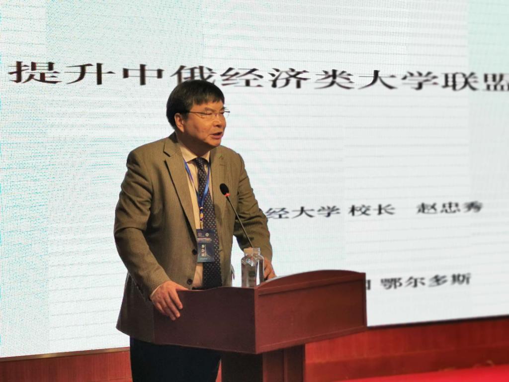 9月25日-27日,由中俄经济类大学联盟主办和内蒙古财经大学承办的第七届“中国-俄罗斯经济类大学联盟”年会暨“中俄经济合作与人文交流”国际论坛在内蒙古鄂尔多斯举行。教育部国际合作与交流司副司长李海、俄罗斯驻华大使馆一秘伊戈尔·亚历山大洛维奇以及来自对外经济贸易大学、俄罗斯圣彼得堡国立经济大学等26所中俄联盟成员高校代表出席了本次论坛。校长赵忠秀应邀出席会议并作大会主旨发言,国际交流与合作处、新兴经济体研究中心代表参加了本次论坛。