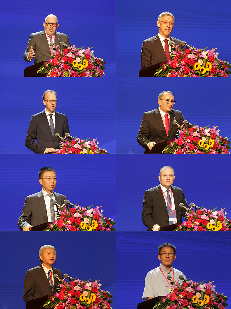 山东财经大学党委书记王邵军,奥地利驻华大使馆文化参赞欧诺德,北京洪堡论坛创始成员、上奥地利应用技术大学副校长禇安思,莱布尼茨协会德国语言研究院院长骆涵宁,卢森宝亚公司大区高级经理赫尔伯特・布赫格尔,银丰集团董事长王伟,福豪盛(北京)技术公司执行董事乔治・马特,对外经济贸易大学副校长王强,山东省社科界联合会副主席张宏明出席开幕式并先后致辞。