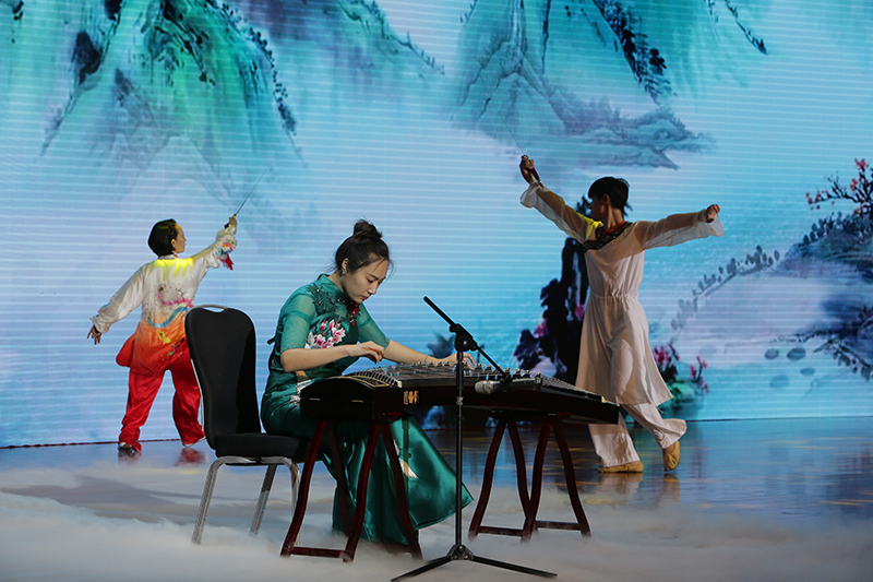 开幕式前,全体与会人员观看了我校师生精心准备的以中华优秀传统文化为主题的文艺表演。音舞诗画《渔舟唱晚》、合唱《乘着歌声的翅膀》《茉莉花》、歌舞《如梦令》《俏花旦》《礼乐龙文》……师生以饱满的热情、动听的音乐、美妙的舞姿,生动演绎了齐鲁大地热情好客的优良传统和“有朋自远方来不亦乐乎”的真实情感,现场气氛热烈,掌声不断。