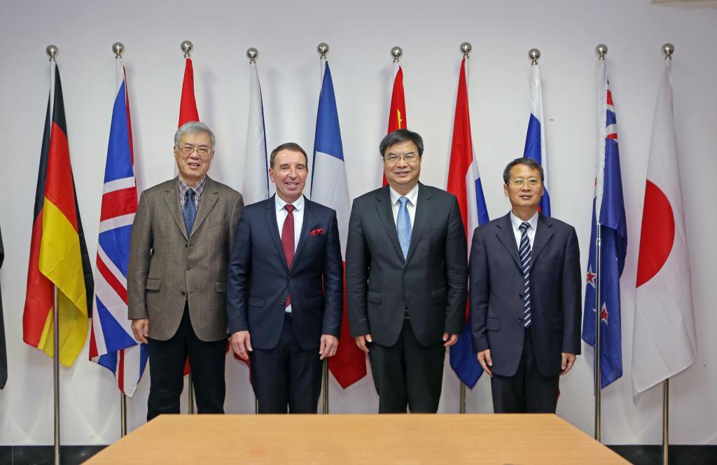 克里斯托夫·布瓦索感谢赵忠秀校长对他与李建乐院长一行的热情招待并介绍了法国高等对外贸易学院基本情况。他表示,学校地处巴黎,区位优势明显,以国际化办学为特色,与全球几百所院校和企业合作,在校学生多达56个国籍,国际化程度高。希望两校在前期友好交往的基础上,能够建立更加稳固、长远、全面的合作关系。双方还就联合对外经济贸易大学三方共建孔子学院问题进行了深入的交流,就“2+3”研究生项目、本科及研究生双学位项目、研究生访学项目等项目合作形式交换了意见。会前,克里斯托夫·布瓦索与李建乐还一同会见了即将赴该校访学的30位研究生同学。会后,两位客人访问了我校MBA学院,就访学项目、合作建立高级经理人发展课程培训中心等合作达成初步意向。