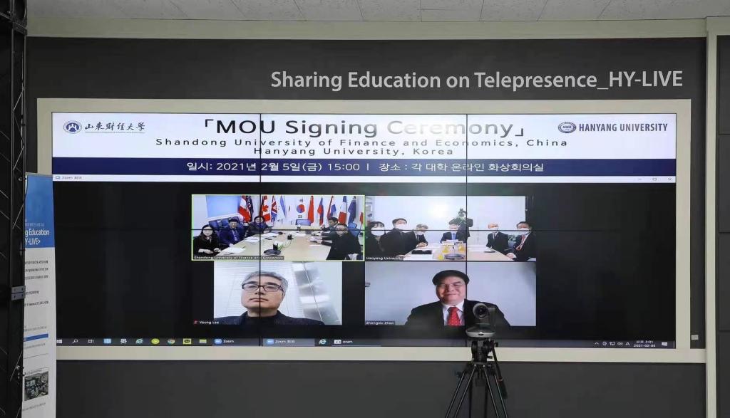2月5日,校长赵忠秀、副校长陶虎、中日韩研究院高级副院长俞在勋(JaeHoon YOO)与韩国汉阳大学校长金于勝(Woo-Seung Kim)、常务副校长金明吉(Myung-jig Kim)、副校长允承宗(Chong Seung Yoon)等进行了视频会谈,并签署合作备忘录。我校国际交流与合作处、外国语学院相关负责人参加了会谈。