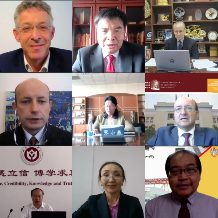 对外经济贸易大学、中央财经大学、山西财经大学、东北财经大学、西南财经大学、中南财经政法大学和奥地利上奥地利应用科技大学、泰国格乐大学、俄罗斯圣彼得堡国立经济大学、希腊雅典经济商业大学、哈萨克斯坦阿斯塔纳国际大学、印度尼西亚泗水大学等高校的领导和专家分别发言,分享了与“一带一路”国家高校的交流合作成果,表达了共享优质教育资源的合作意向。
