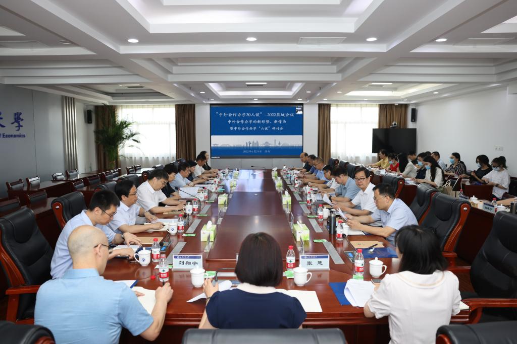 6月24日,第二届“中外合作办学30人谈”2022泉城会议—中外合作办学新形势、新作为暨中外合作办学“六说”研讨会在我校燕山校区举办。山东省教育厅副厅长孙晓筠、校党委书记王邵军、校长赵忠秀、山东建筑大学副校长郭益灵、副校长陶虎、省教育厅国际处处长王夫海出席会议。