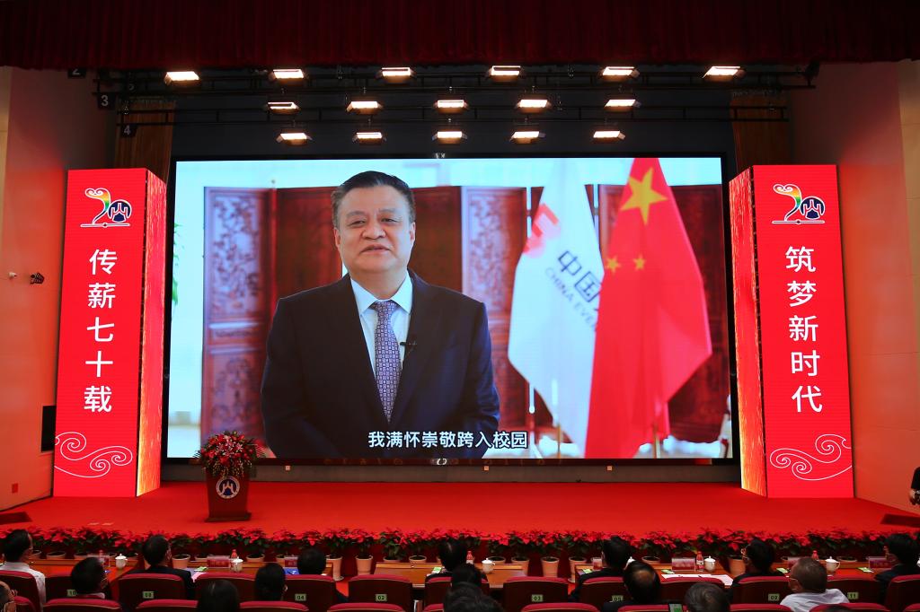 审计署党组成员、中央经济责任审计工作部际联席会议办公室主任、山东财经大学原党委书记郝书辰,中国光大集团股份公司党委书记、董事长、1980级校友王江,上海财经大学校长助理、长江学者、1993级校友李增泉,洪泰基金创始合伙人、董事长、1985级校友盛希泰等通过视频,表达了对山东财经大学70华诞的美好祝福。他们的祝福视频在会场播放,赢得了阵阵掌声。