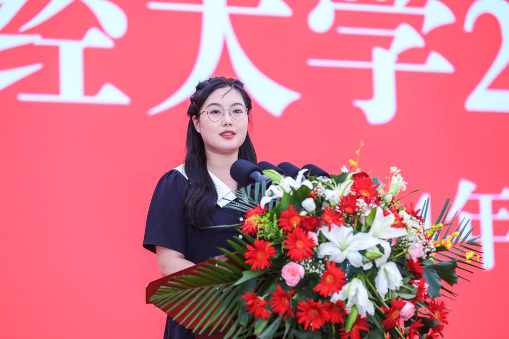 国际经贸学院2020级博士研究生张潇叶、管理科学与工程学院2020级本科生丁甲旺作为毕业生代表先后发言,表达了对母校、恩师、同窗的衷心感谢,回忆了自己与山财大的青春故事,立志牢记校训、挺膺担当,并祝福毕业生们前程似锦、梦想花开。