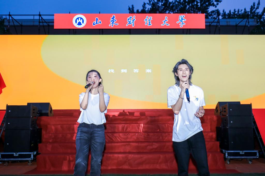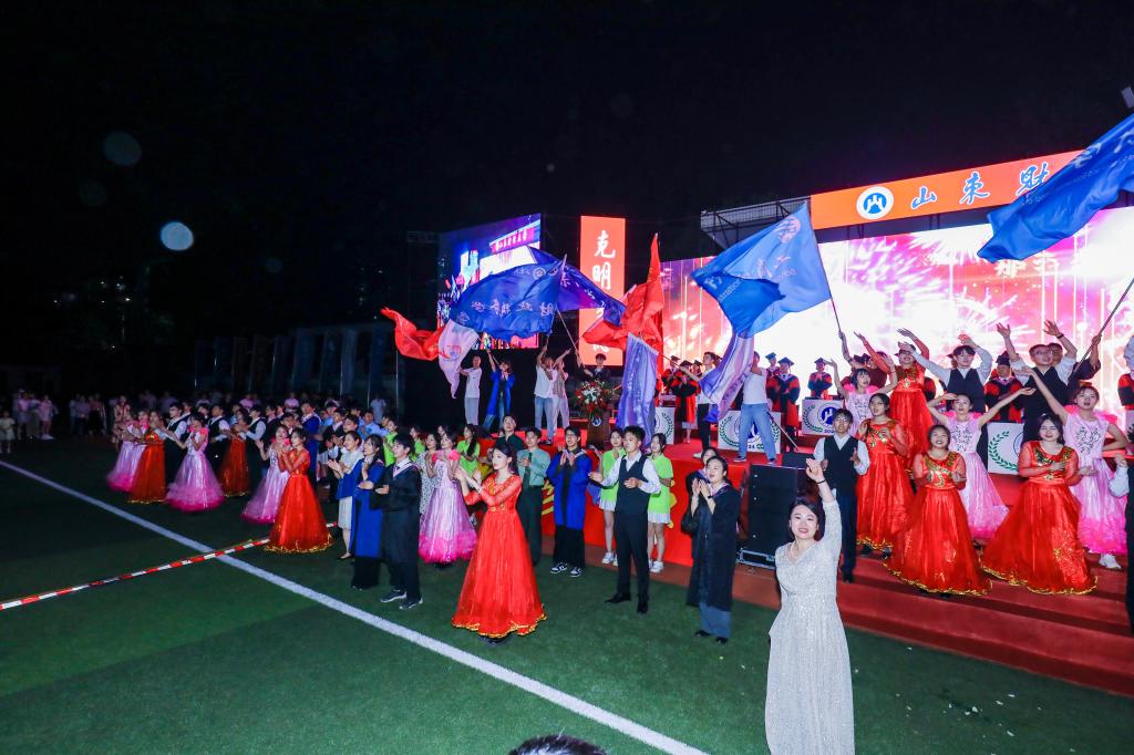 典礼结束后,师生合唱《送别》,“青春之歌”毕业歌会正式开始。保险学院院长于文广教授、计算机科学与技术学院刘慧教授合唱歌曲《星辰大海》,表达了新时代中国青年的胸怀天下、担当有为;B站百大UP主、统计与数学学院宋浩副教授演唱的《曾经的你》,诉说着对母校的不舍、对同窗的惜别。《和你一样》《你的答案》《骄傲的少年》等歌舞表演,唱出了勇敢做自己的青春态度。伴随着《毕业歌》旋律的响起,校旗、院旗随风招展,掌声、欢呼声、呐喊声将现场气氛推向高潮。