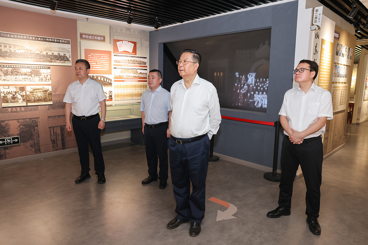 在圣井校区,刘利民一行参观了校史馆,详细了解学校办学历史,调研学校党建和思政工作、学科建设、人才培养、科学研究、社会服务、对外交流合作等工作。随后,听取了校区建设情况介绍,并调研智慧图书馆建设、馆藏资源、阅读场景、数据平台等工作。