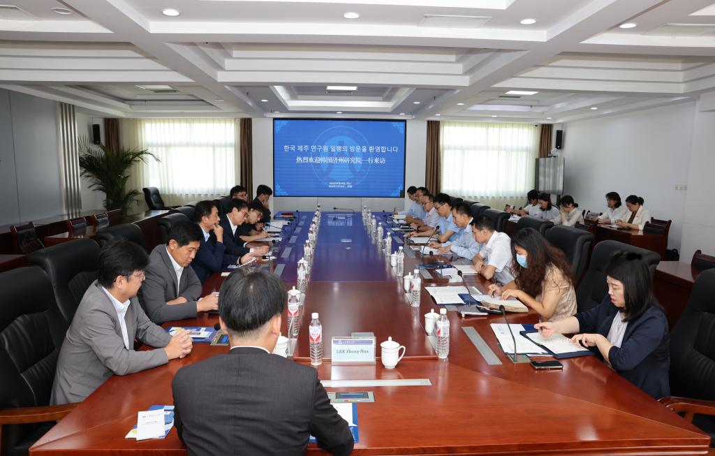 康真荣介绍了济州研究院的组织架构、研究领域等,我校金融发展研究院院长冯林和经济研究中心副主任刘海明介绍了各自研究机构的基本情况及研究成果等。