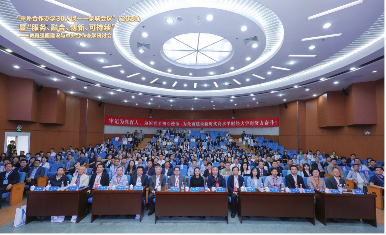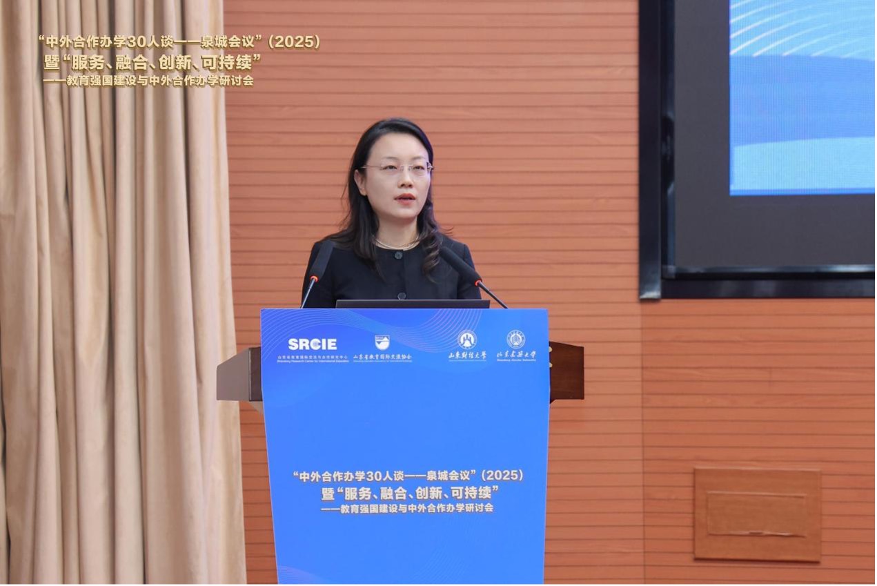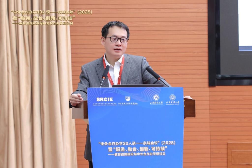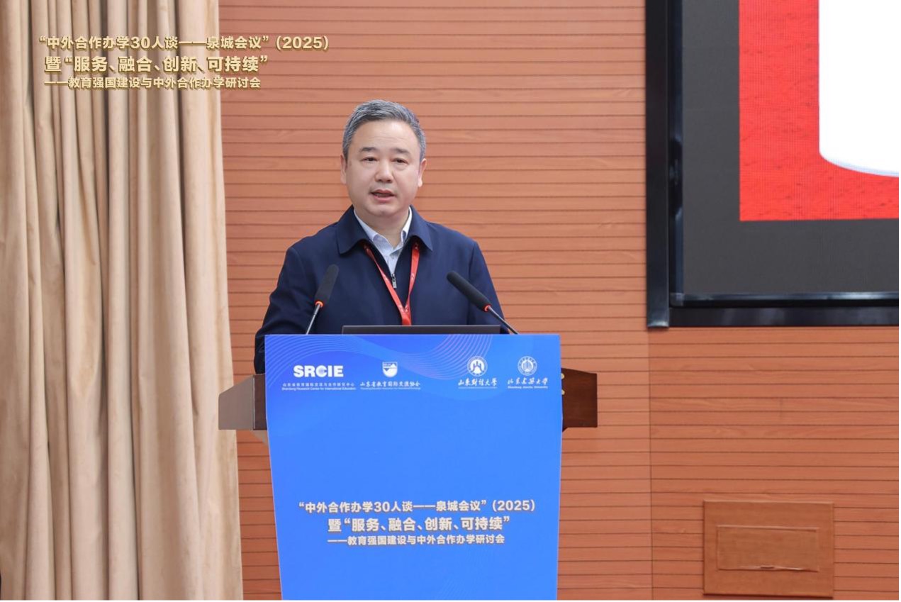 5月9-10日,第五届“中外合作办学30人谈-泉城会议”(2025)暨“服务、融合、创新、可持续”——教育强国建设与中外合作办学研讨会在济南成功举办。山东省教育厅副厅长李鹏、国际处处长王夫海,中国教育国际交流协会《教育国际交流》杂志编辑部主任唐振福,山东省教育国际交流协会副会长刘永波、孙祖兴,鲁东大学党委书记王庆,山东建筑大学副校长王清标,山东财经大学党委书记查玉喜、校长洪俊杰、副校长彭红枫等出席会议。汇聚了全国中外合作办学领域重要专家50余人,来自160余所高校和机构的400多位同仁共襄盛举。