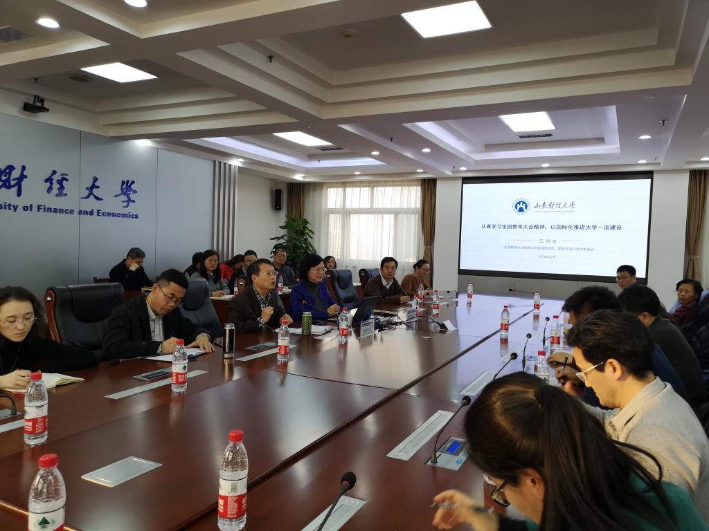 12月21日下午,全国教育大会精神山东宣讲团成员、国际交流与合作处处长王剑波,在燕山校区作了题为“认真学习全国教育大会精神,以国际化推进大学一流建设”的报告。