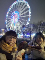同时在交换过程中,我也遇到了很合拍的挚友。我们在开学第一天相识,因为我的一句“你长得好像动画片里的人物”开启了我们的友谊。我们一起去了小王子的商店,一起参过了好多次卢浮宫,一起上孔院的书画课,一起坐到A线的终点站去郊区看城堡,一起吃烘焙房里的可颂,一起滑冰;一起去杜乐丽花园的圣诞集市买了一大个火鸡腿和肋排,一边吃一边在寒风中冻得瑟瑟发抖,一起看灯光秀,我的法语词汇非常穷尽,所以她就会时不时的向我翻译大致内容;我常常有无穷无尽的问题,而她会不厌其烦的一一向我解释,比如我分不清鸟巢和槲寄生·,她就给我详细的解释它们的区别是什么。